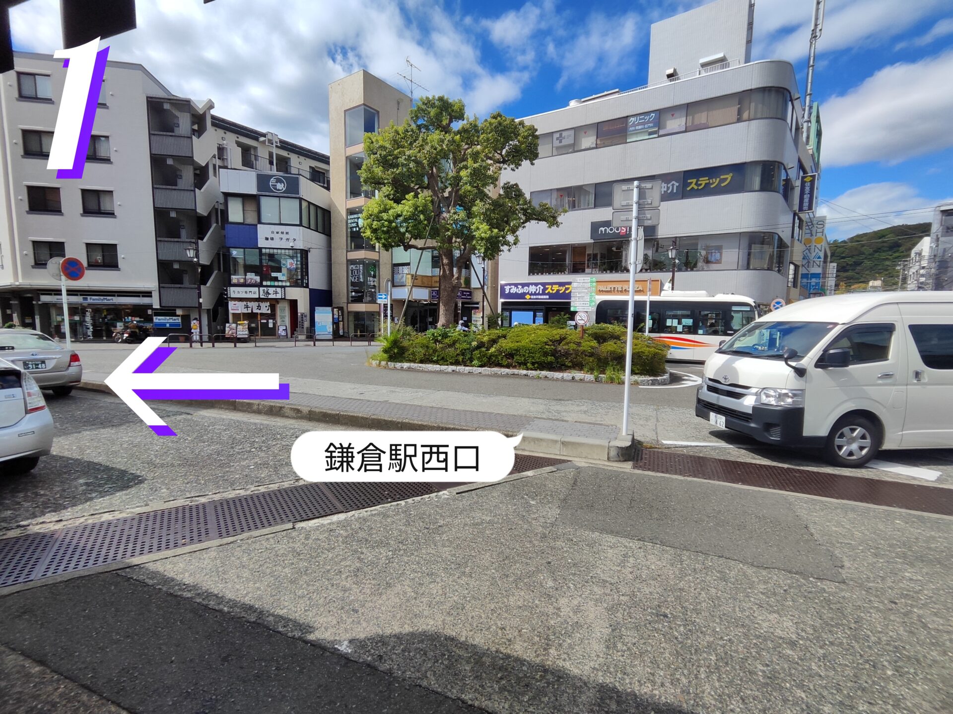 1.鎌倉駅西口を降りたら左に行きます。