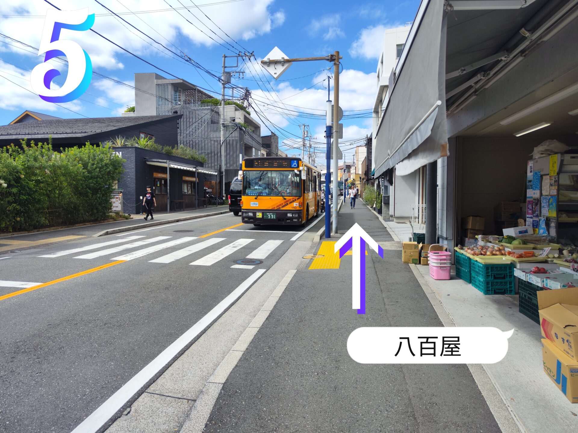 5.直進します。右手に八百屋があります。