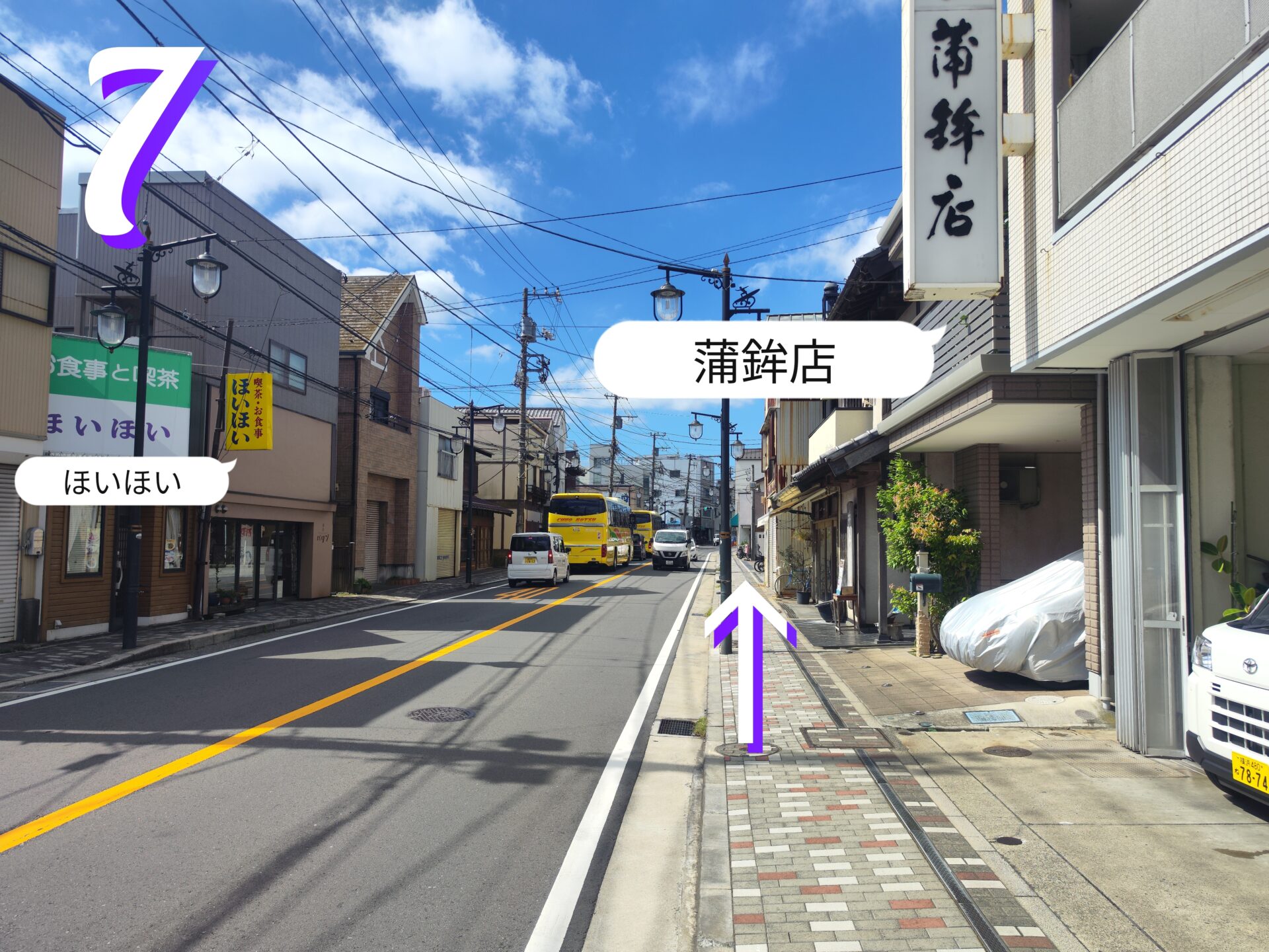 7.直進します。右手に蒲鉾店、左手にほいほいがあります。