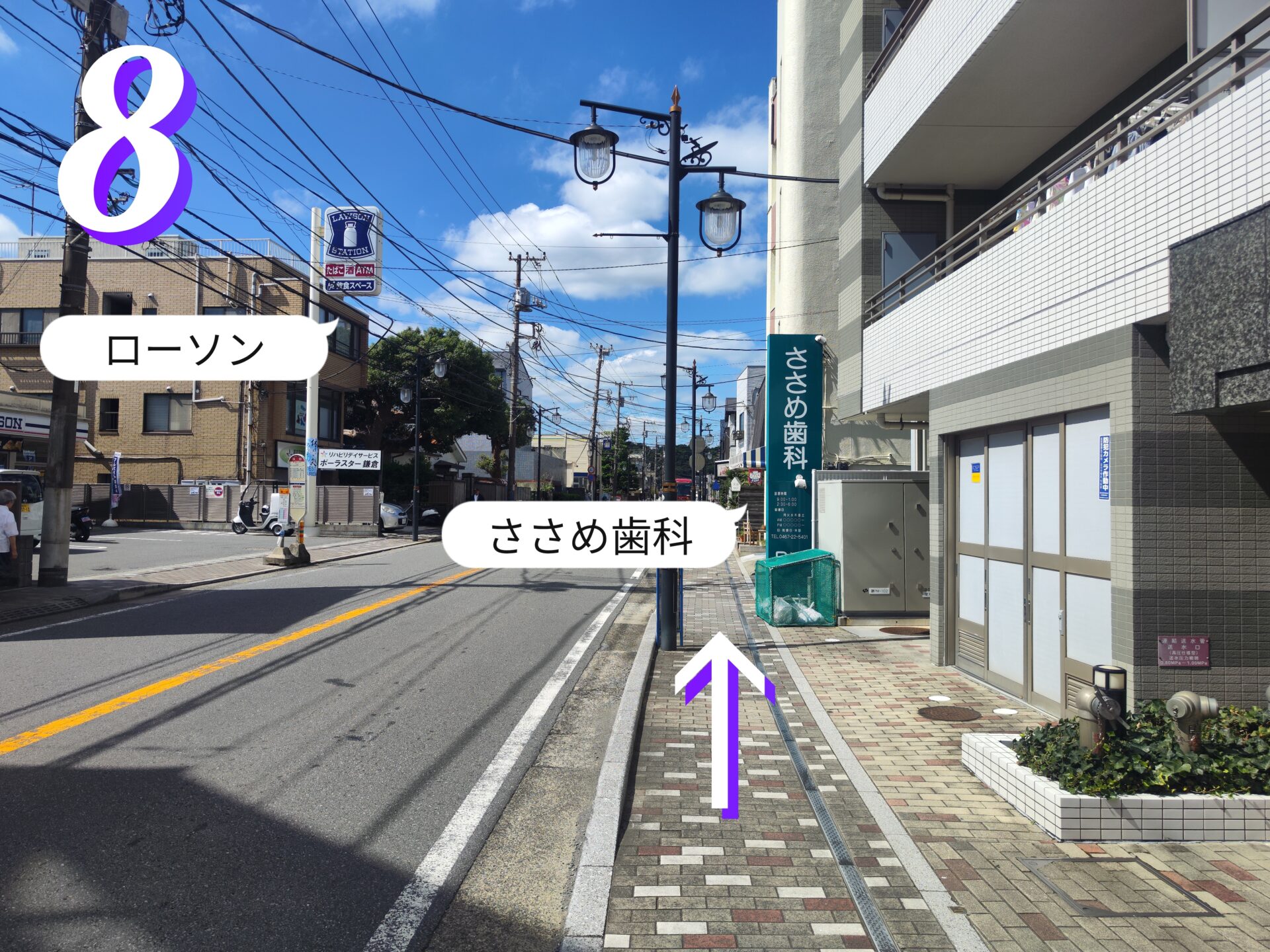 8.直進します。右手にささめ歯科、左手にローソンがあります。もうすぐ到着します。